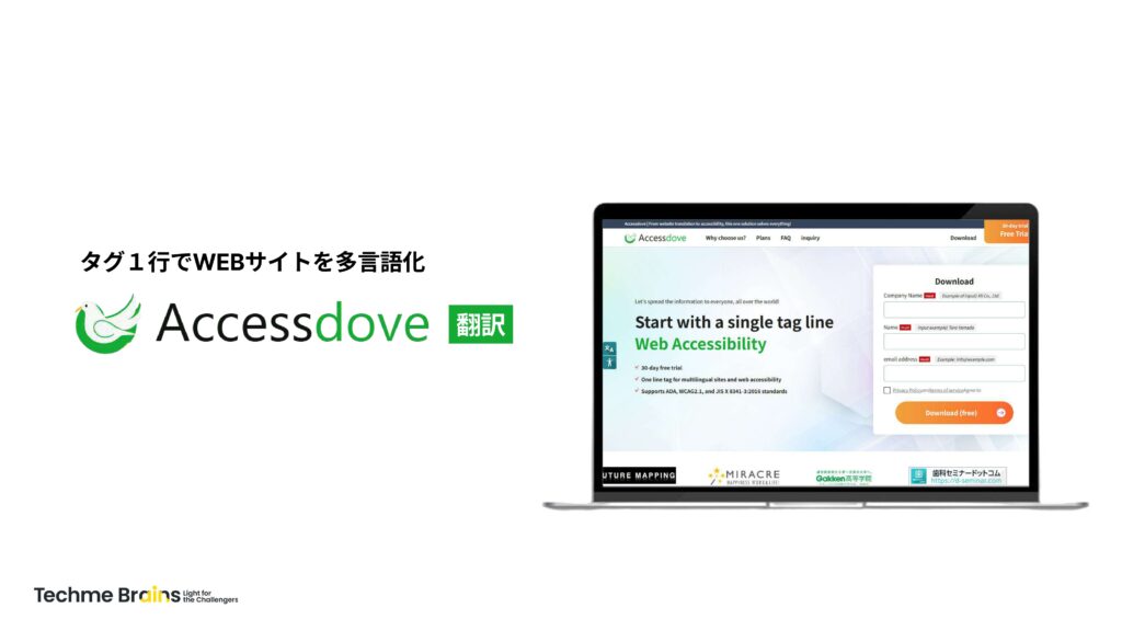 1Accessdove翻訳は、ウェブサイトにたった1行のタグを追加するだけで、多言語切替ボタンを簡単に設置できるサービスです。この仕組みにより、日本語だけでは理解が難しい訪日外国人にも、スムーズに情報を届けられる環境を整えられます。日本を訪れる外国人は年間約3,500万人にのぼるとされるため、サイトの多言語対応は重要性が高まっています。Accessdove翻訳は、専用スクリプトをウェブサイトに設置するだけで全ページが自動的に翻訳され、多くの外国人ユーザーにも迅速に対応できます。利用方法も非常にシンプルで、まず「無料トライアル」ボタンからフォームに必要事項を入力して管理画面にアクセスします。その後、管理画面に表示されるタグを自社サイトに設置するだけで利用可能です。